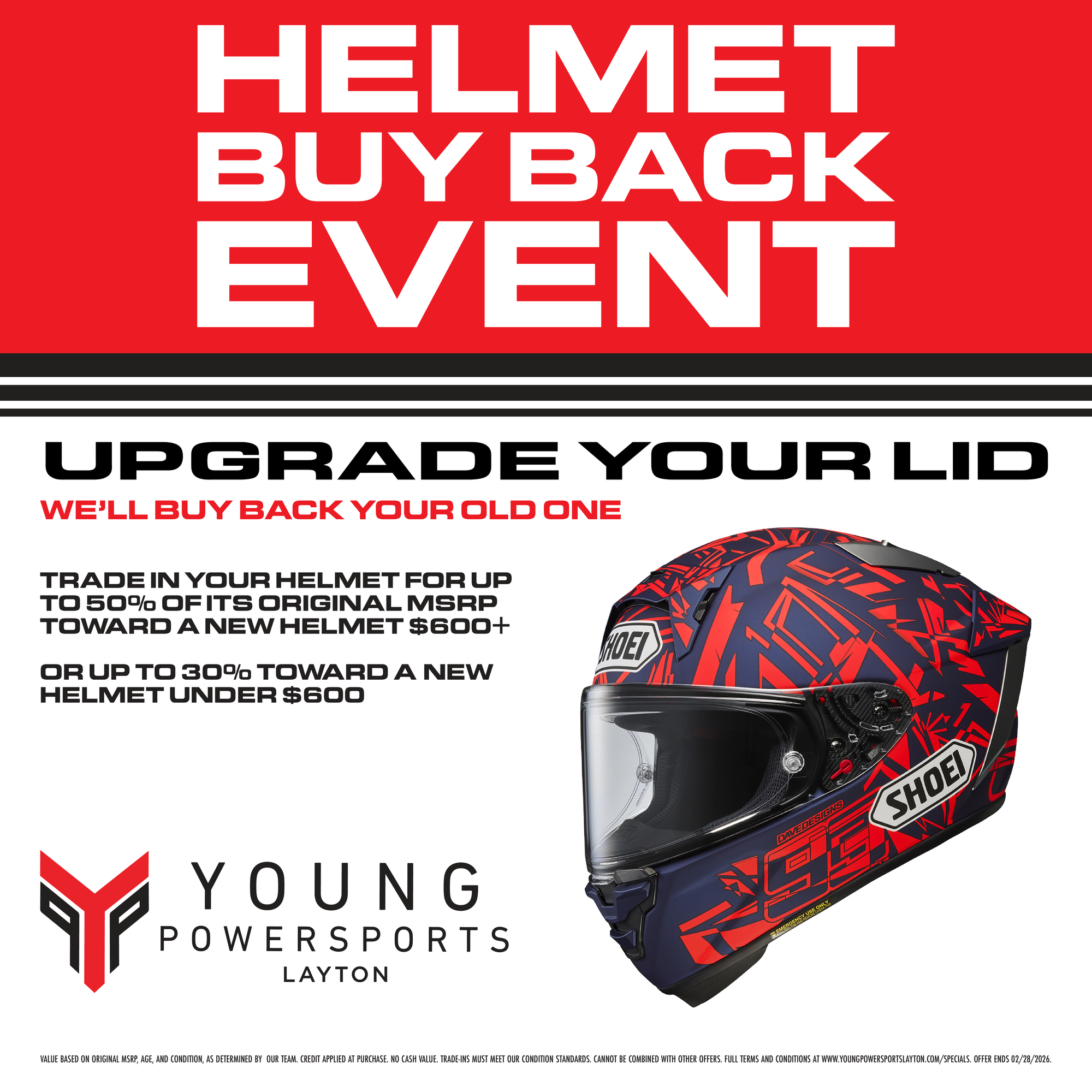 ●Trade in your helmet for up to 50% of it's original MSRP toward a new helmet $600+ or up to 30% toward a new helmet under $600. See dealer for details.*